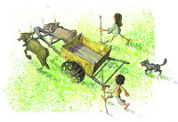 | Žaga in mlin sta napravi, ki ju je včasih poganjala voda, zdaj pa predvsem elektrika. Voda priteče na vodno kolo, ki požene napravo, da žaga les ali melje zrna. |