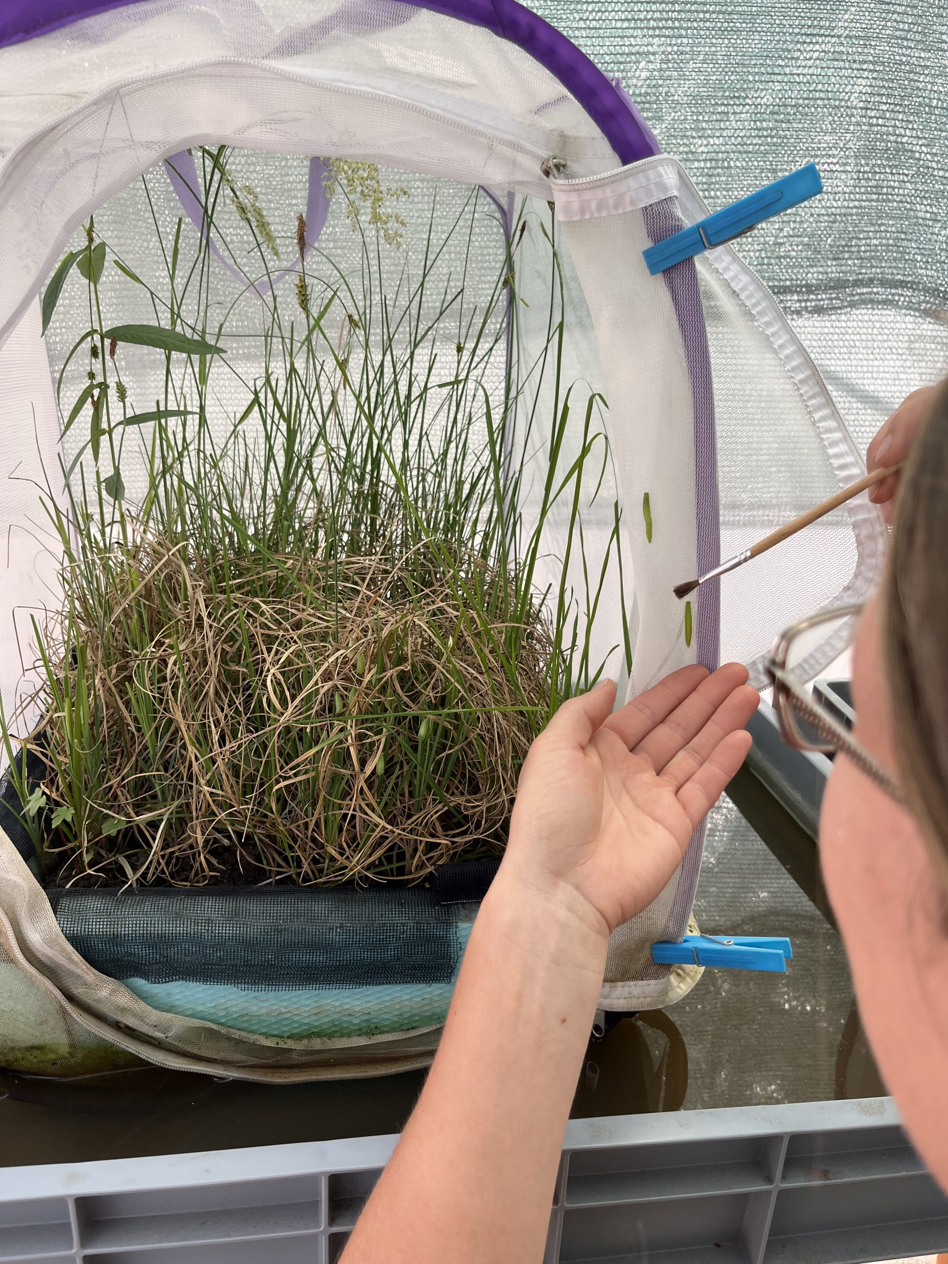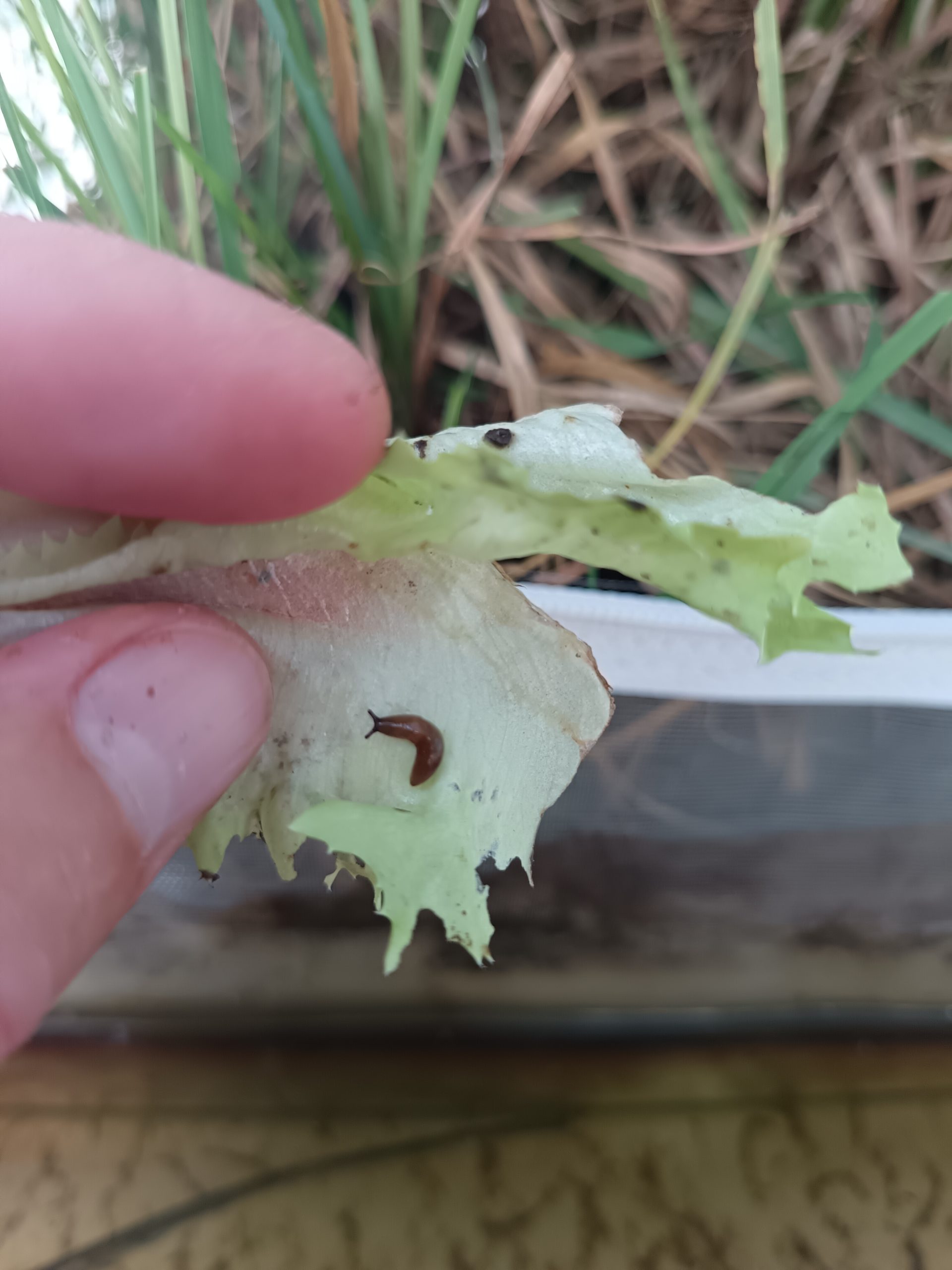 Posebno skrb namenjamo odstranjevanju polžev. Ti so lahko nevarni za mirujoče stadije razvoja metuljev, zlasti bube. Od poletja smo iz insektarijev skupno odstranili že 187 golih polžev! Lovimo jih s pomočjo solate, ki jo namestimo ob rob insektarija.