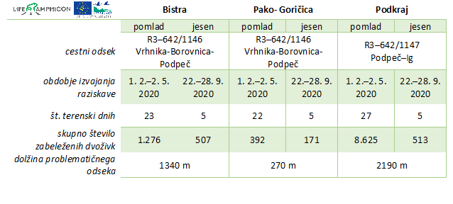V letu 2020 so bili na cestnih odsekih pri Bistri, Pakem – Goričici in Podkraju izvedeni intenzivni nočni pregledi cest med spomladansko ter jesensko selitvijo. S pomočjo raziskave so bile opredeljene najprimernejše lokacije za umestitev trajnih ograj in podhodov na problematičnih cestnih odsekih.