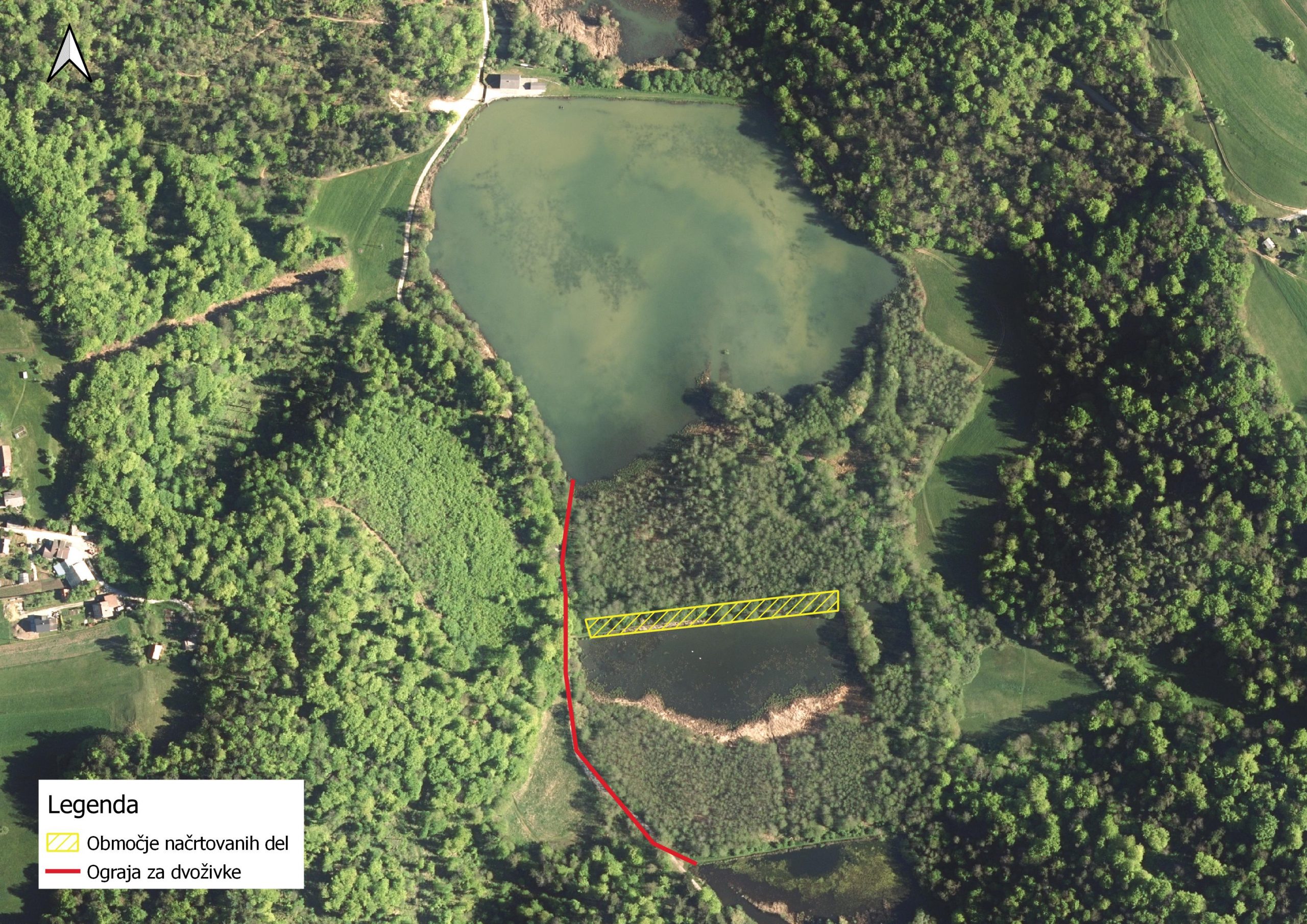Ribnik bo v času del potrebno izprazniti, zato smo v začetku tedna postavili ograje za dvoživke, ki preprečujejo njihov dostop do njega oz. jih preusmerja v preostalih 10 ribnikov v okolici. Tam bodo njihovi mresti na varnem in kmalu bomo lahko v vodi opazovali številne paglavce.