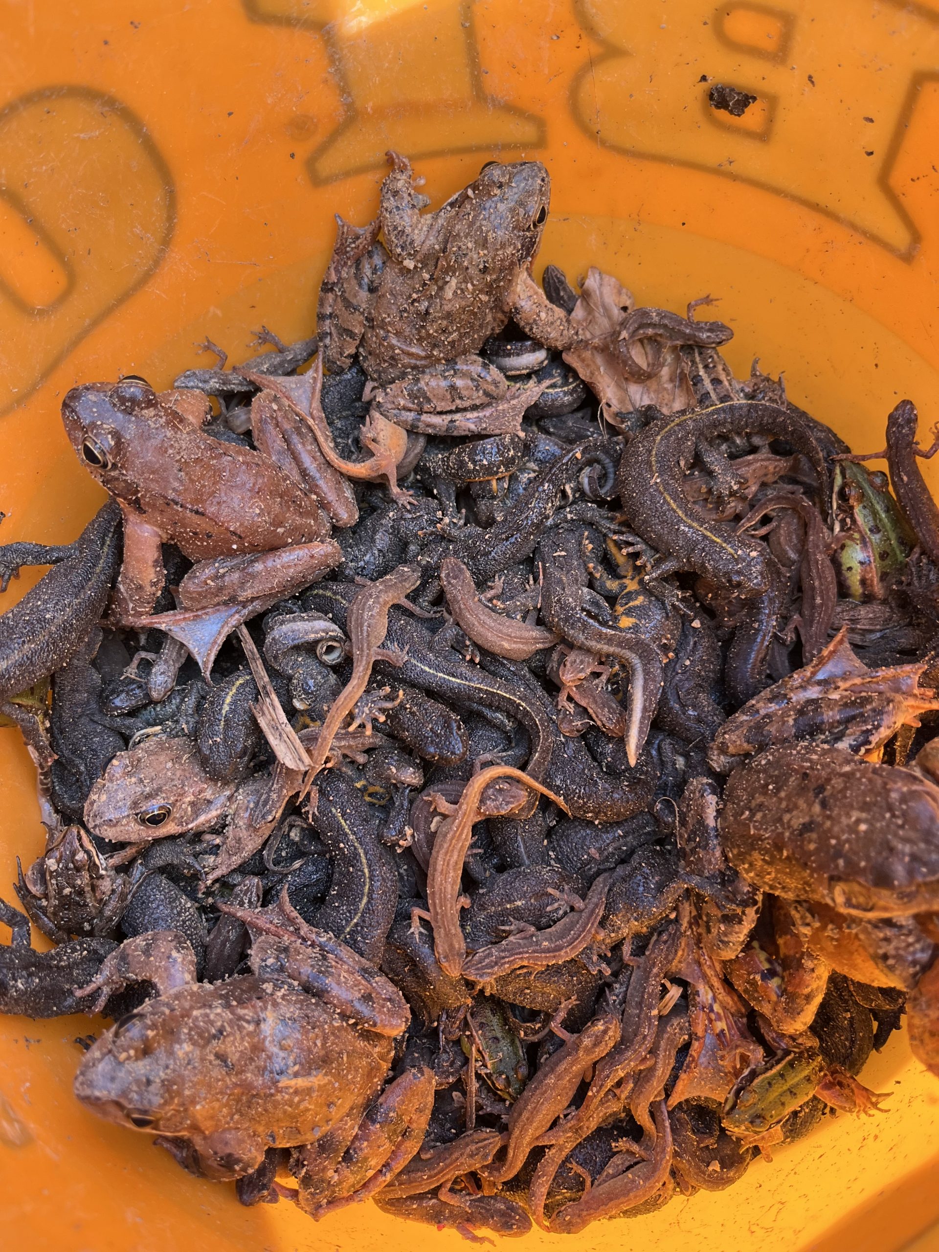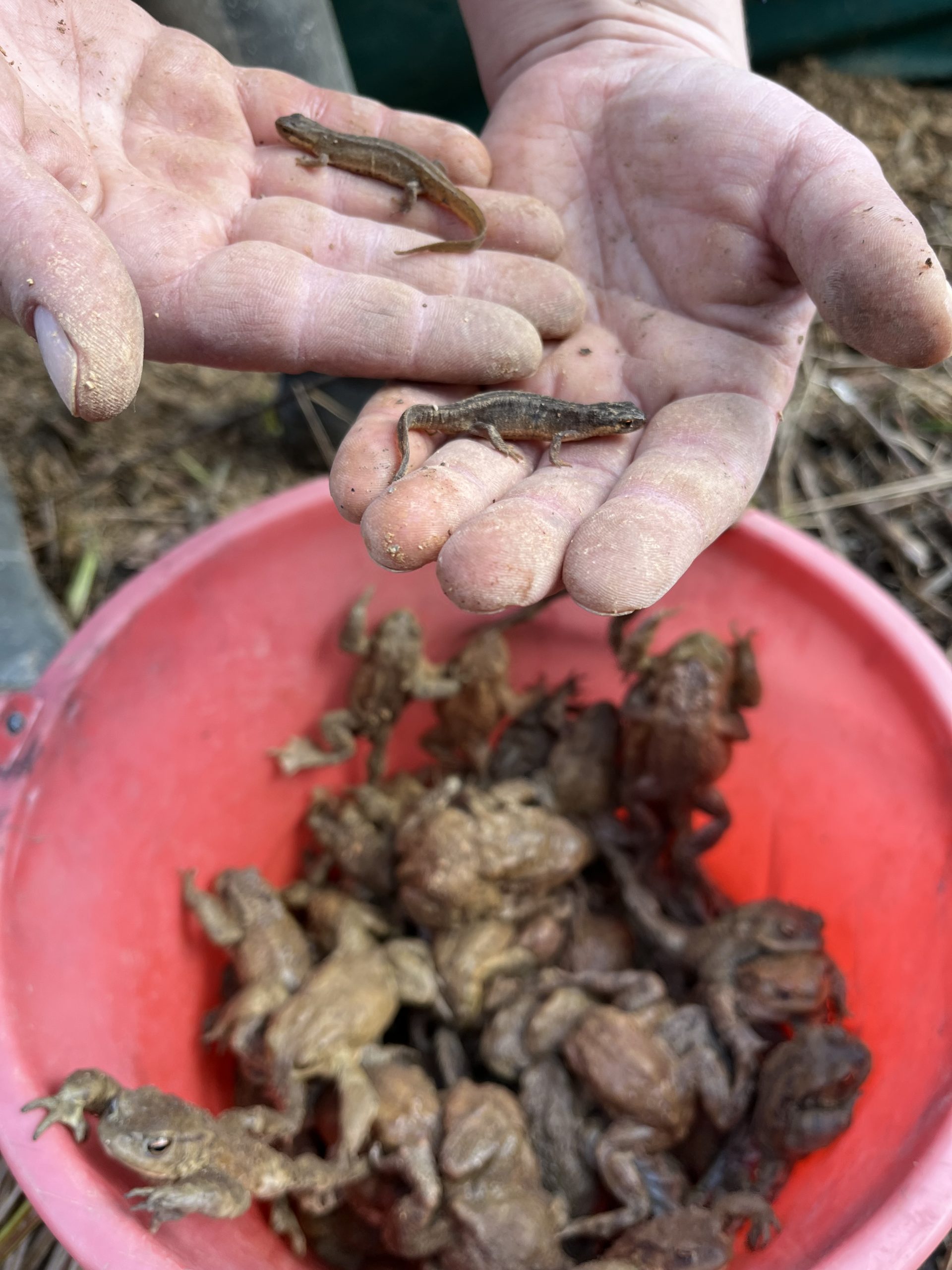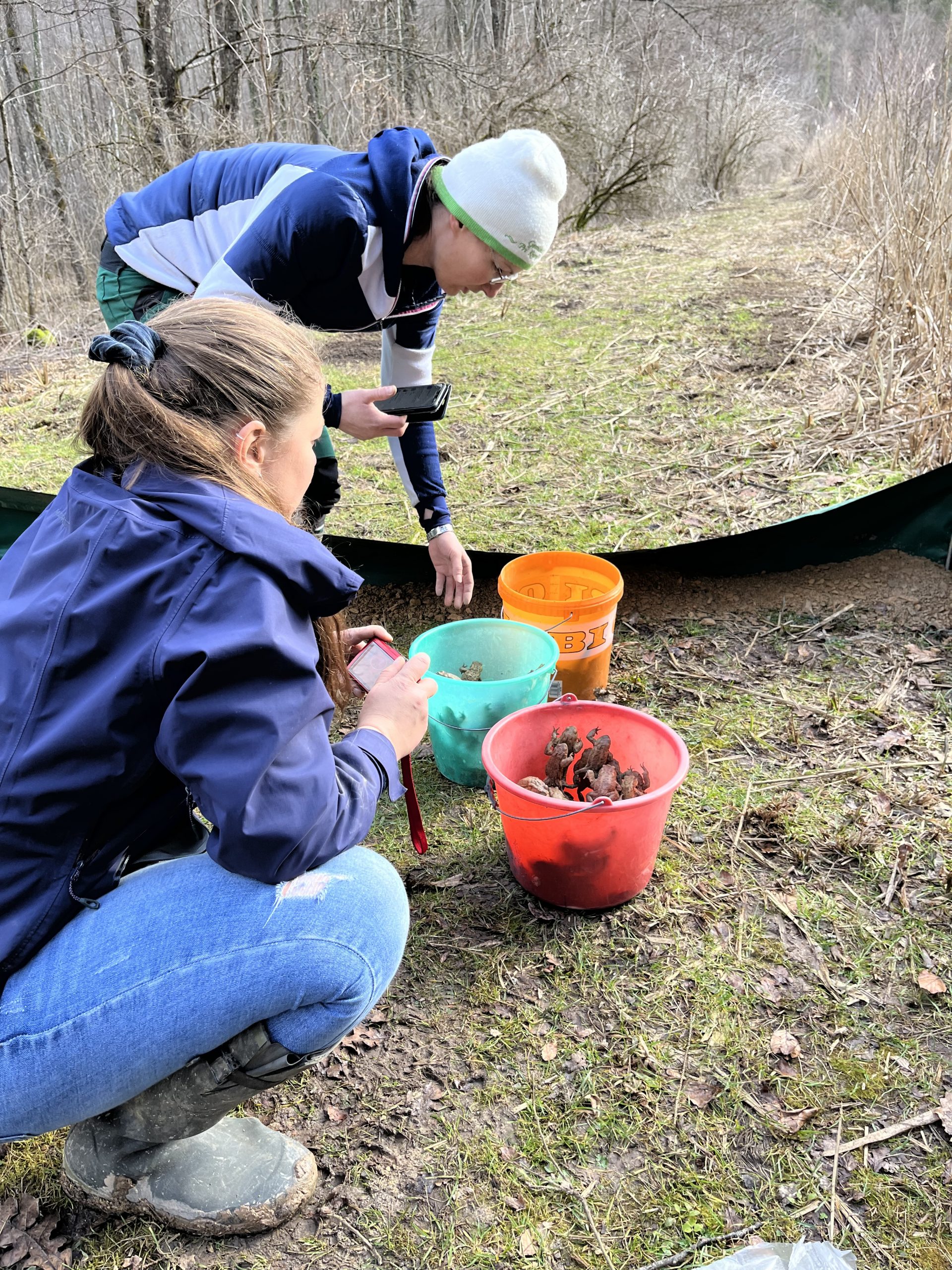 Dvoživke, ki jih je ograja ustavila, zjutraj prenesemo do bližjega primernega ribnika. Samo včeraj (9. 3. 2023) smo jih tako preselili kar 1213, od tega največ navadnih krastač. Še posebej smo se razveselili 292 velikih pupkov, ene najbolj ogroženih vrst dvoživk v Evropi.