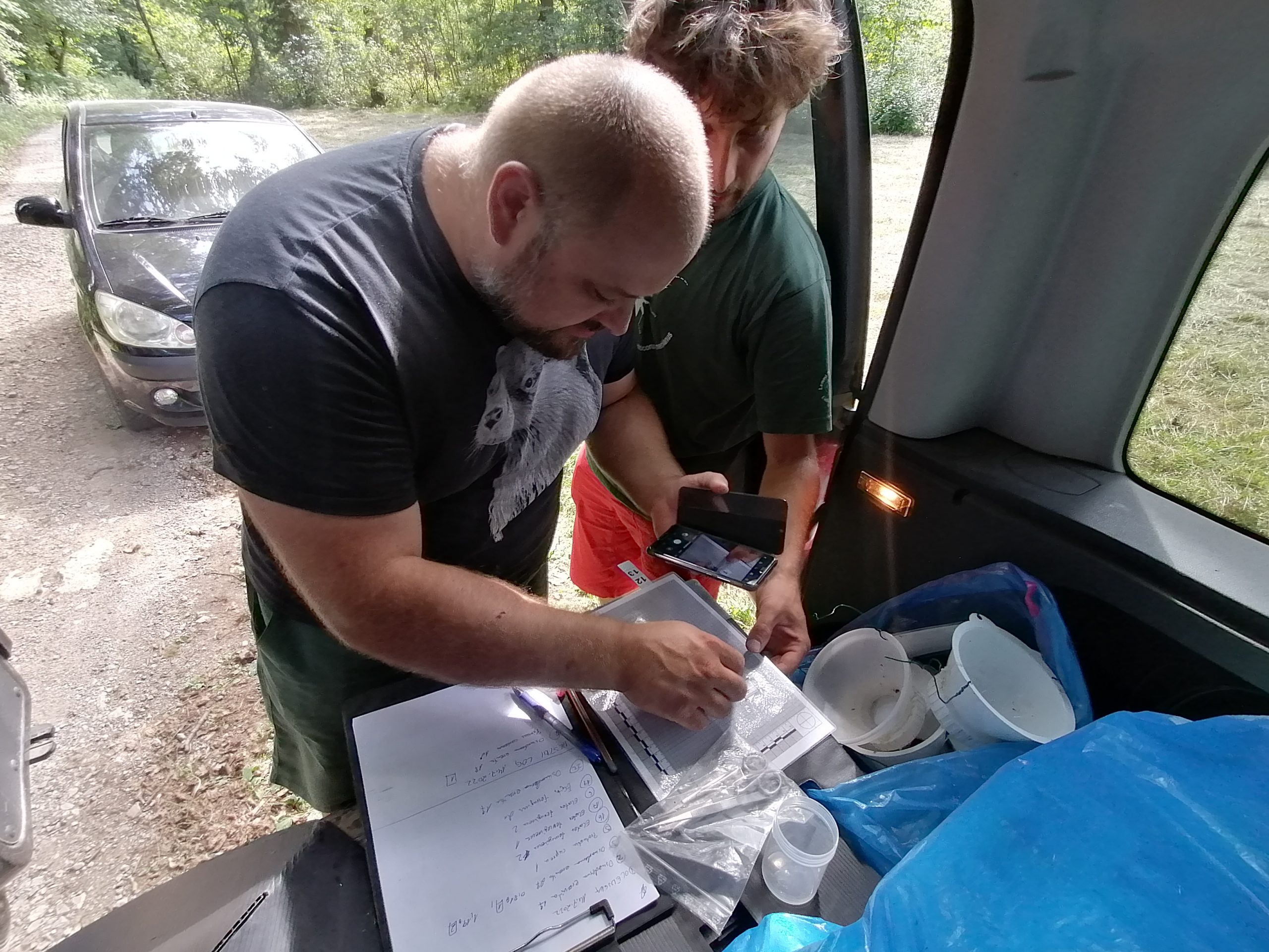 Za razliko od prvega pregleda, za katerega smo uporabili vodne pasti, smo med drugim pregledom vzorčenje opravili z vodnimi mrežami. V številnih mlakah smo zabeležili paglavce in mlade osebke rjavih in zelenih žab, ličinke navadnih in planinskih pupkov, razveselili pa so nas tudi že skoraj preobraženi paglavci oz. ličinke zelene rege, hribskega urha in velikega pupka. Vse ulovljene osebke smo natančno dokumentirali, zabeležili pa smo tudi mreste in odrasle živali, ki smo jih opazili. V začetku avgusta bo sledil še tretji pregled, kjer bomo preverili, ali so se dvoživke v mlakah uspešno preobrazile.
