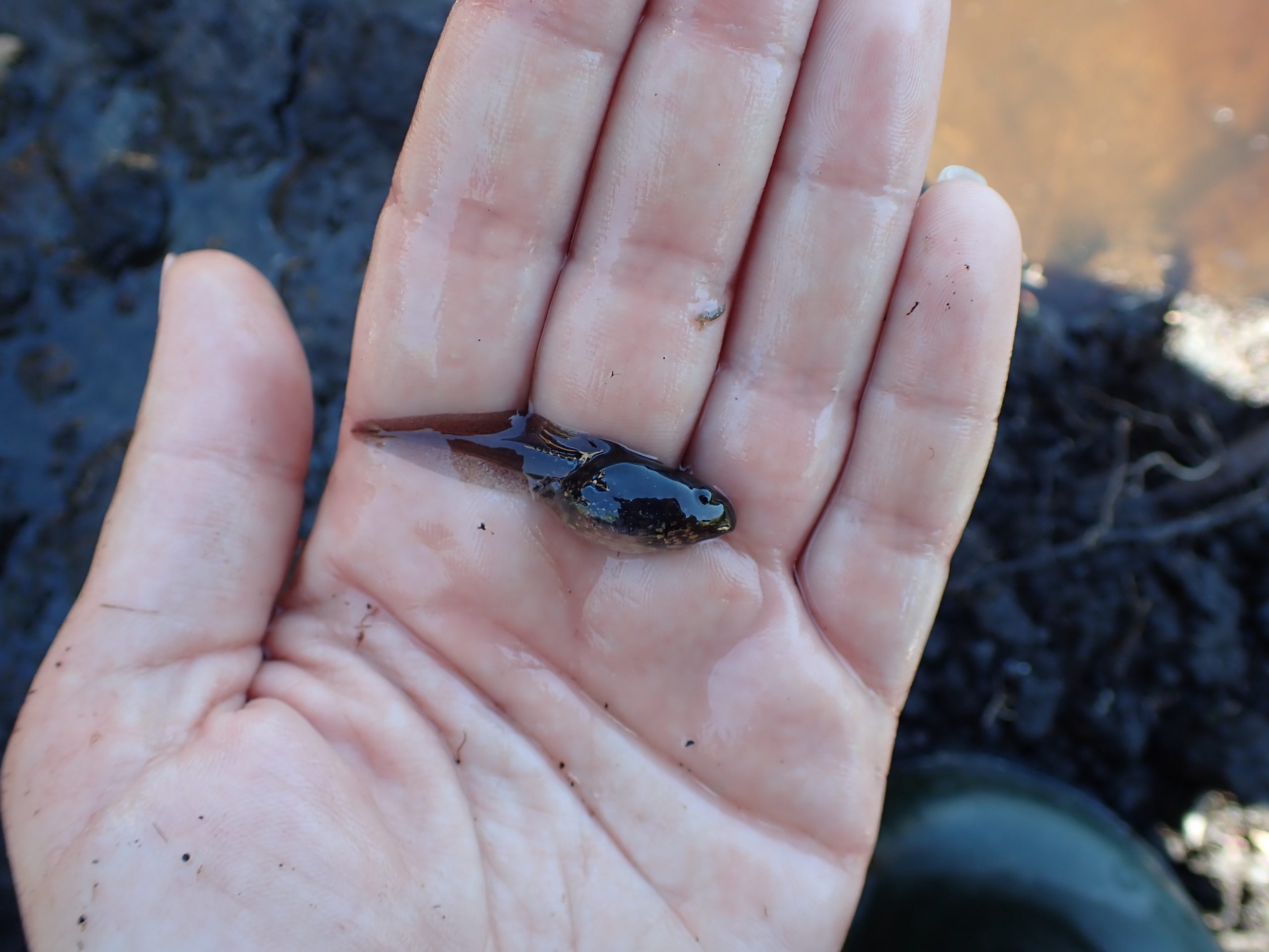 Za razliko od prvega pregleda, za katerega smo uporabili vodne pasti, smo med drugim pregledom vzorčenje opravili z vodnimi mrežami. V številnih mlakah smo zabeležili paglavce in mlade osebke rjavih in zelenih žab, ličinke navadnih in planinskih pupkov, razveselili pa so nas tudi že skoraj preobraženi paglavci oz. ličinke zelene rege, hribskega urha in velikega pupka. Vse ulovljene osebke smo natančno dokumentirali, zabeležili pa smo tudi mreste in odrasle živali, ki smo jih opazili. V začetku avgusta bo sledil še tretji pregled, kjer bomo preverili, ali so se dvoživke v mlakah uspešno preobrazile.